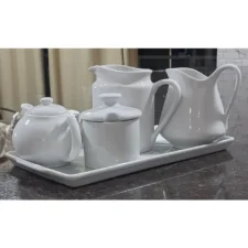 Kit Porcelana Branca Peças de porcelana feitas de material de alta qualidade, queimados em alta temperatura, o que os torna fortes, resistentes e com alto brilho, e deixa qualquer ambiente mais bonito e moderno.