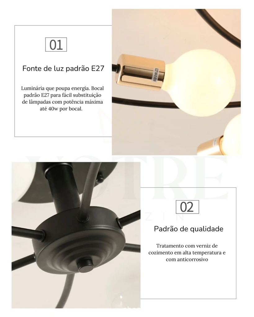 Imagine-se imerso na suave luminosidade desse lustre deslumbrante, criando uma atmosfera mágica e envolvente em sua casa. Seus convidados ficarão impressionados e você mesmo se encantará todas as vezes que acender as luzes.